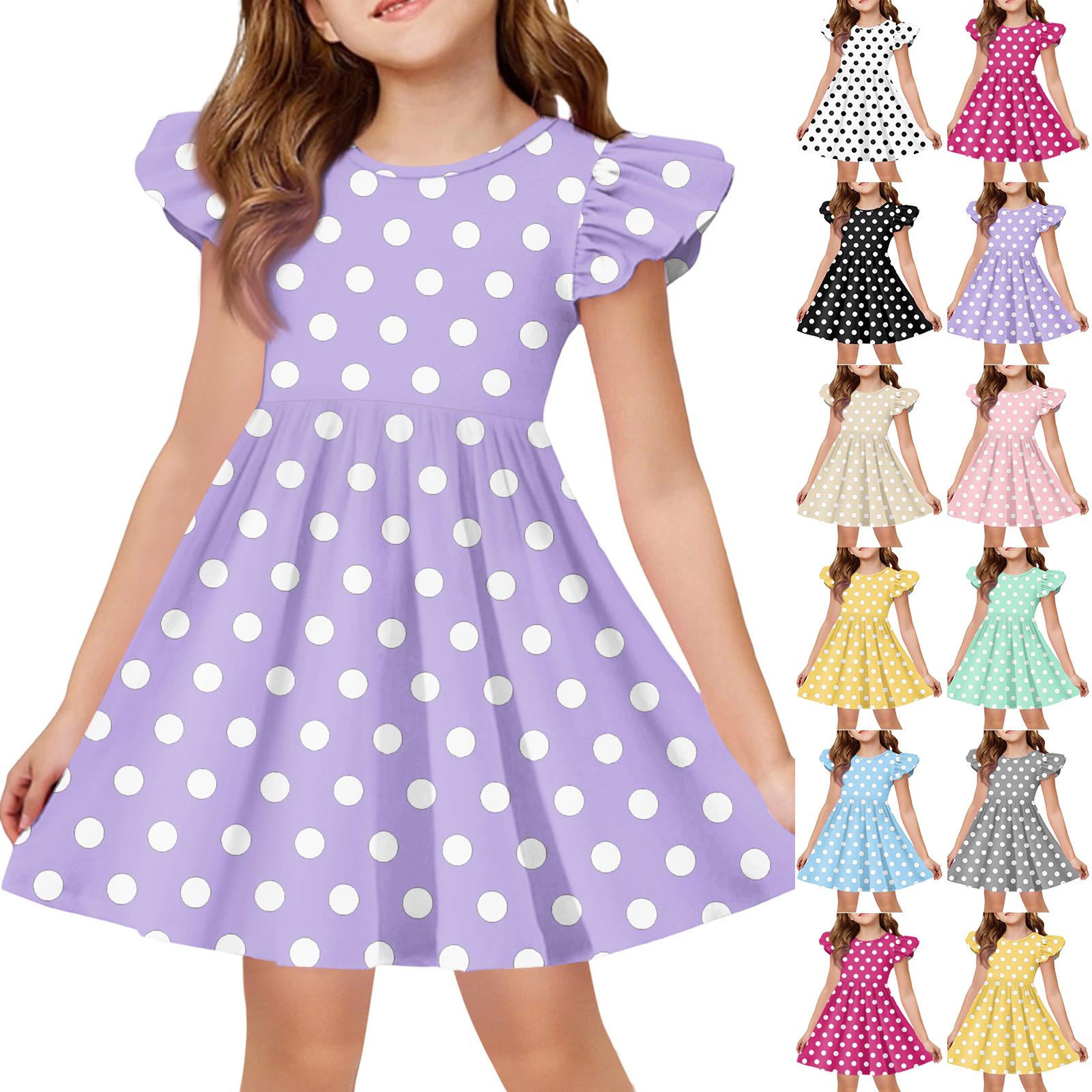 Girls' Short Sleeve Puff Stitch Princess Dress cm
