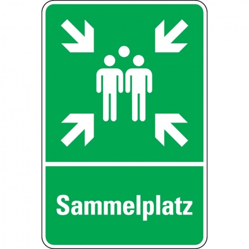 Schild I Rettungs-Kombischild Sammelstelle, Aluminium RA01, reflektierend, 400x600mm, ASR A1.3, DIN EN ISO 7010 E003 und E007
