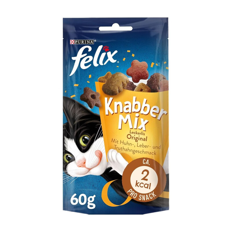PURINA FELIX KnabberMix Original mit Huhn-, Leber- & Truthahngeschmack - 8 x 60g - Bunte Katzensnacks
