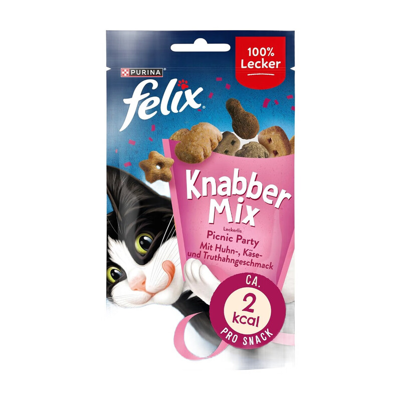 PURINA FELIX KnabberMix Picnic Party Katzensnack, Knusper-Leckerlie mit 3 Geschmacksrichtungen, 8er Pack (8 x 60g)