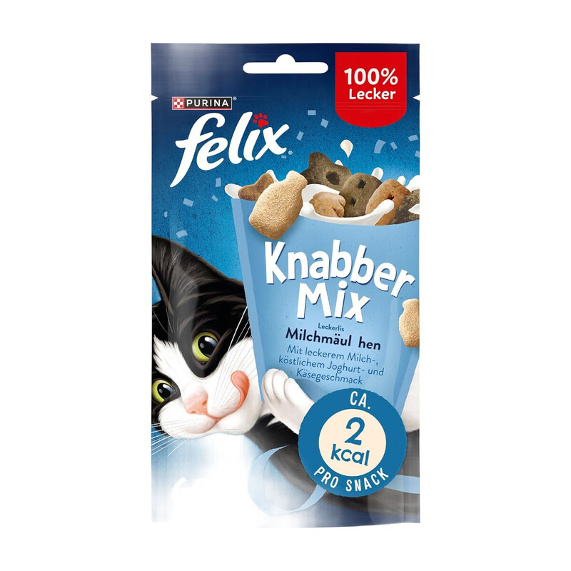 PURINA FELIX KnabberMix Milchmäulchen Katzensnack, Knusper-Leckerlie Laktosearm, 8er Pack (8 x 60g)