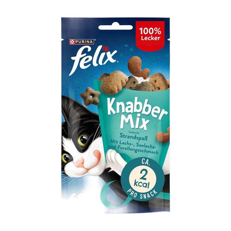 PURINA FELIX KnabberMix Strandspaß Katzensnack, Knusper-Leckerlie mit Fisch-Geschmack, 8er Pack (8 x 60g)