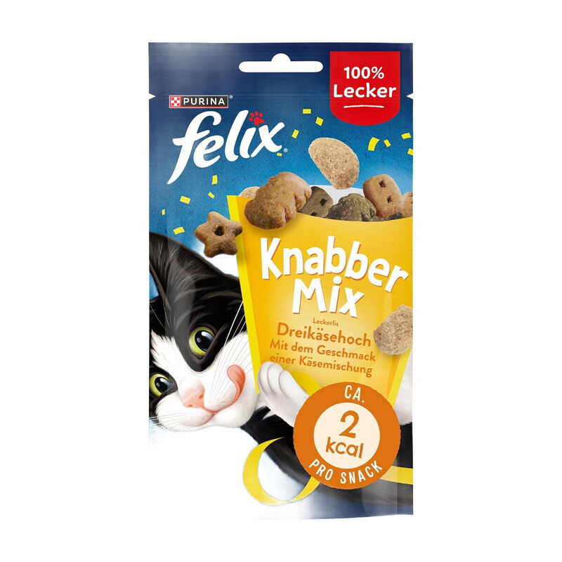 PURINA FELIX KnabberMix Dreikäsehoch Katzensnack, Knusper-Leckerlie mit Käsegeschmack, 8er Pack (8 x 60g)