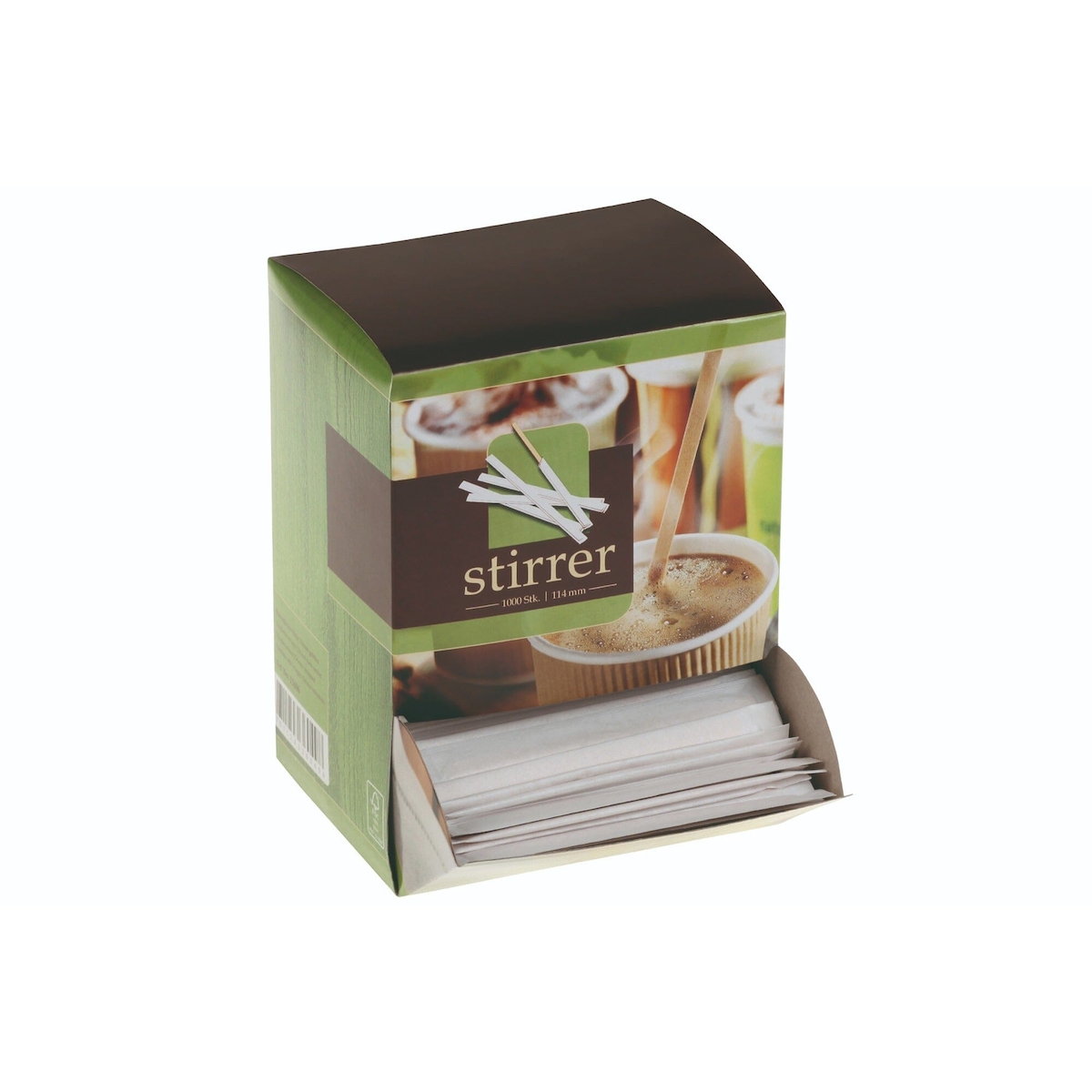 WISEFOOD 10000 Stück - Rührstäbchen Holz einzeln gehüllt in Dispenserbox - 114mm