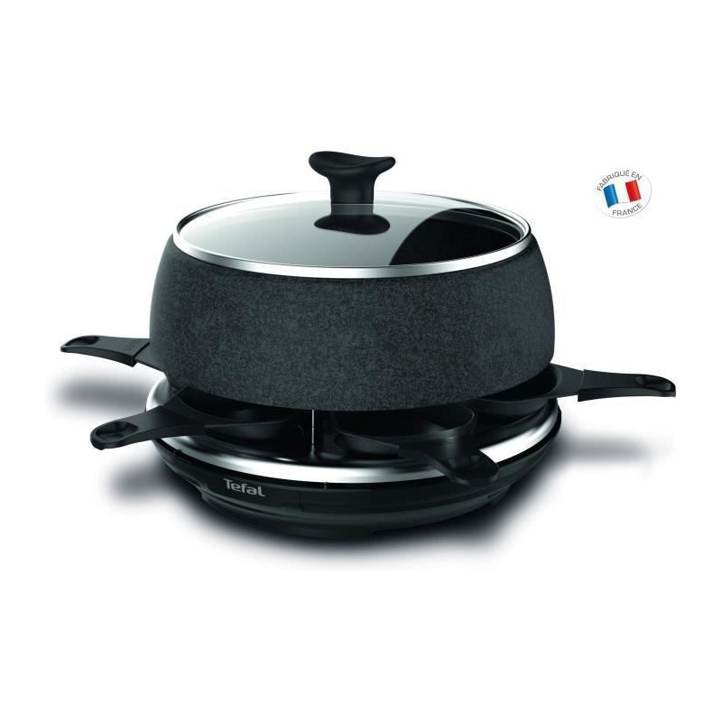 TEFAL Raclette und Fondue-Set "Cheese 'n Co, 6 Raclettepfännchen, 850 W, für 6 Personen", schwarz (cherry schwarz), B:35,9cm H:24,4cm T:35,9cm, Raclettes, spülmaschinengeeignet, mit Rezeptbuch, Stein-Optik, RE12C8