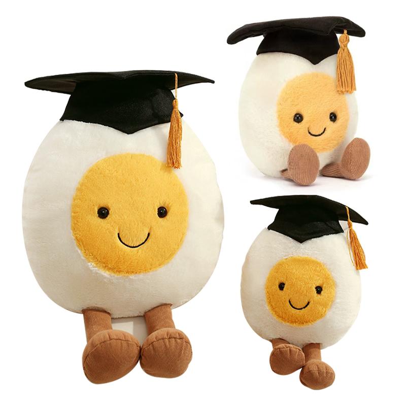 14/25/40CM Kawaii Toy Boiled Egg with Doctorial Hat Funny Egg Pillow Stuffed Soft Dolls Graduation Birthday Gift