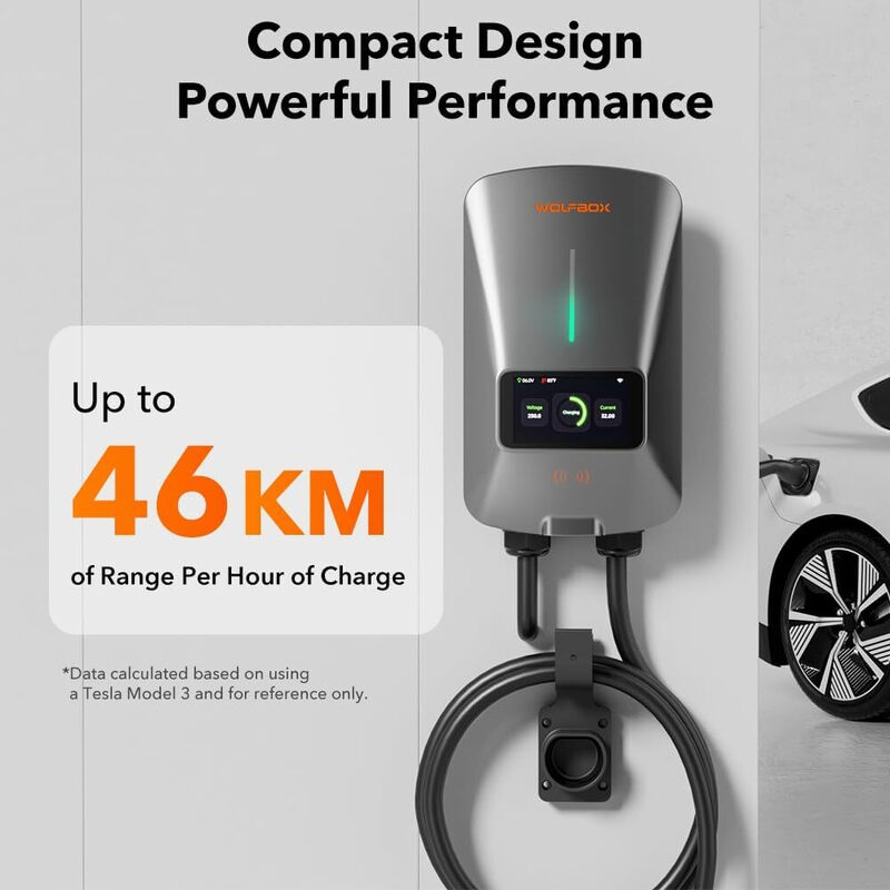 WOLFBOX AC07 Elektrofahrzeug-Ladestation Typ 2, 7 kW, 32 A, 1-phasig, Wandladegerät mit LCD-Display, App-Steuerung, RFID-Karte