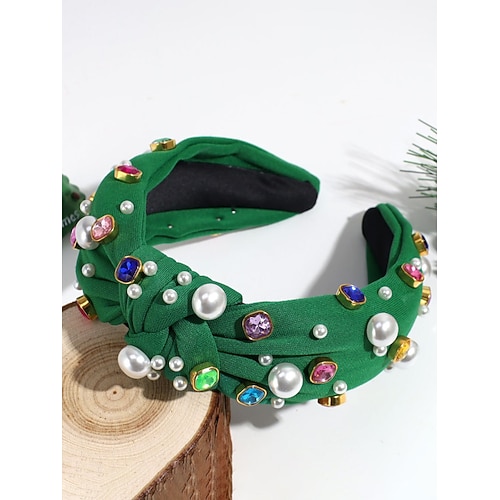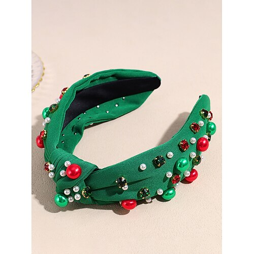 cerchietto natalizio verde da donna con perle strass multicolori, elegante accessorio imbottito per capelli per feste, regali abiti invernali