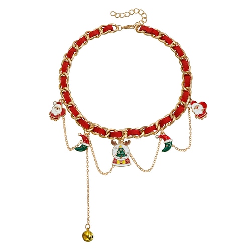 set di collana e bracciale natalizi da donna, rosso e oro con Babbo Natale ciondoli ad albero, perfetti per feste e regali