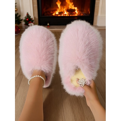 pantofole da donna in pelliccia bianca e accogliente: comode pantofole da interno per l'inverno, regali per le feste e relax a casa