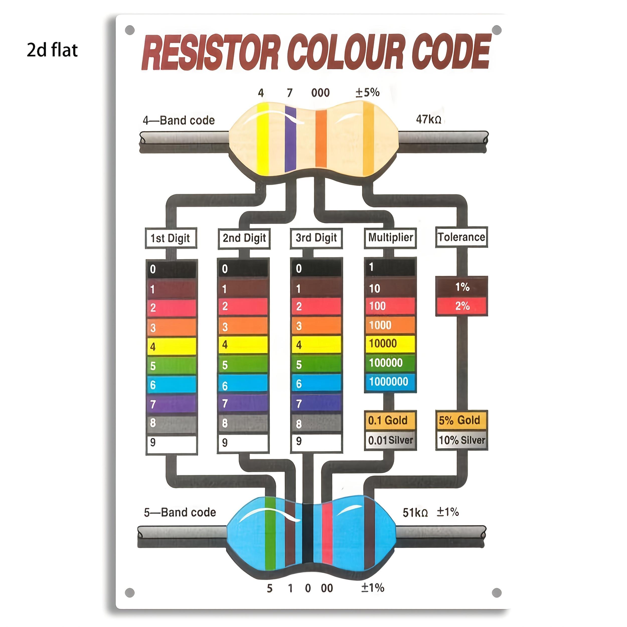 Resistor Color Code Metal Wall Art - Iron Poster with Illustrated Guide to Electrical Conductivity, Dustproof Decor for Liv