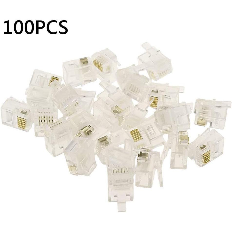 100 stk 6P6C 4P4C RJ12 RJ9 Krystallhode Modulær Plugg Gullbelagt Nettverkskontakt For Solide Telefonkabler Kontakter