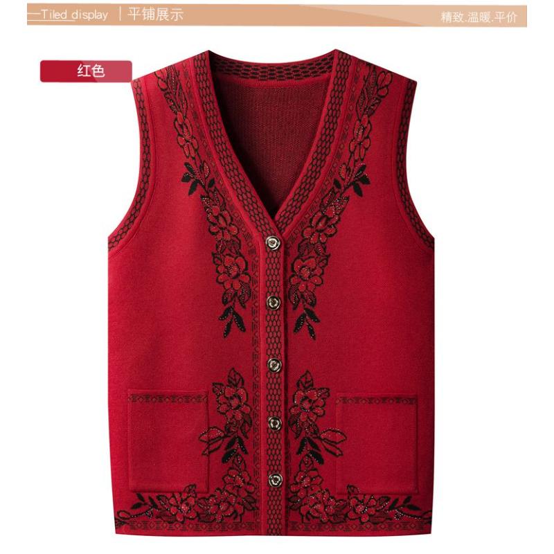 Sleeveless Plant and Flower Contrasting Pocket Women's Button Cardigan Vest Top cm red