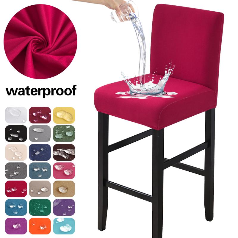 Waterproof Bar Stool Covers Stretch Short Back Chair Covers Counter Height Chairs Covers for Kitchen Dining Room Cafe Furniture