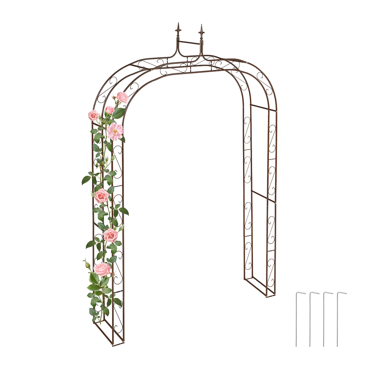 Relaxdays Rosenbogen Metall, HxBxT: 240 x 155 x 39 cm, Torbogen Garten, stabiler Rankbogen für Kletterpflanzen, braun