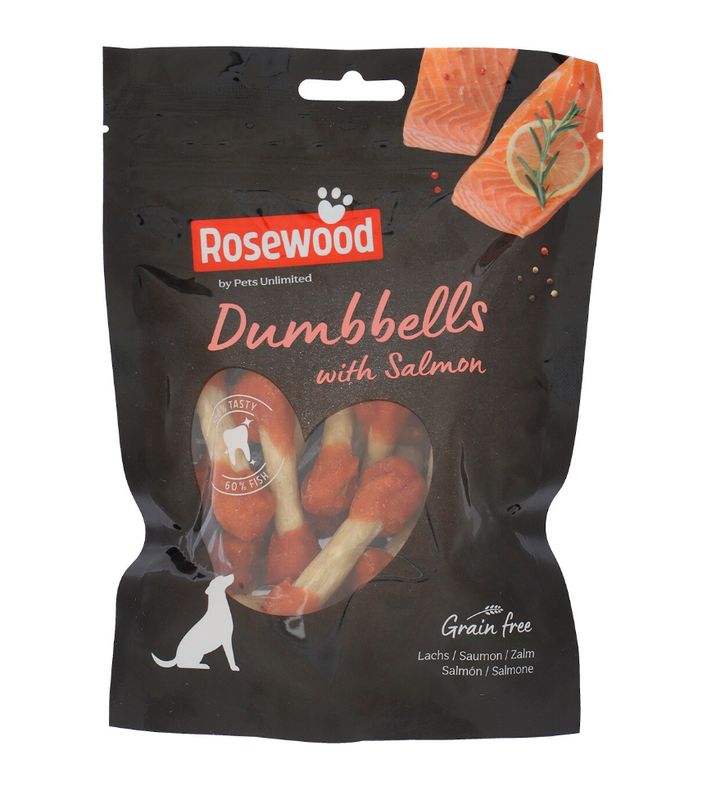 Rosewood botjesnacks voor kleine en middelgrote volwassen honden met zalm, graanvrij, bakje 150 g