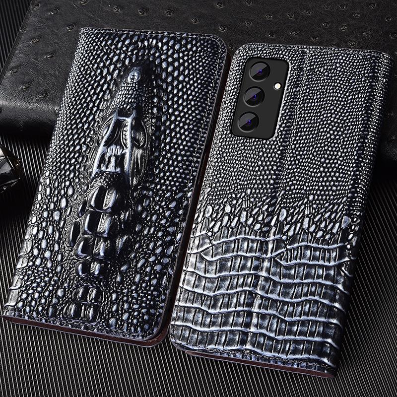 Krokodil Echt Leer Flip Hoesje Voor Samsung Galaxy A04 A14 A24 A34 A54 A05 A15 A25 A35 A55 A06 A16 A26 A36 A56 Cover Cases groen