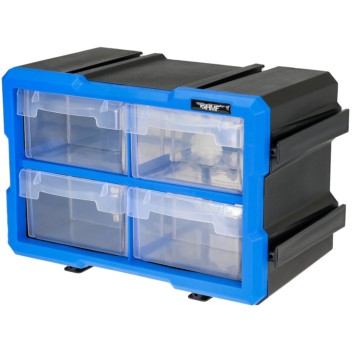 HMF Sortierbox für Kleinteile mit 4 Schubladen, erweiterbarer Sortimentskasten für Schrauben und Werkzeug, 8 Fächer, 29,5 x 19,5 x 16 cm, Blau-Schwarz
