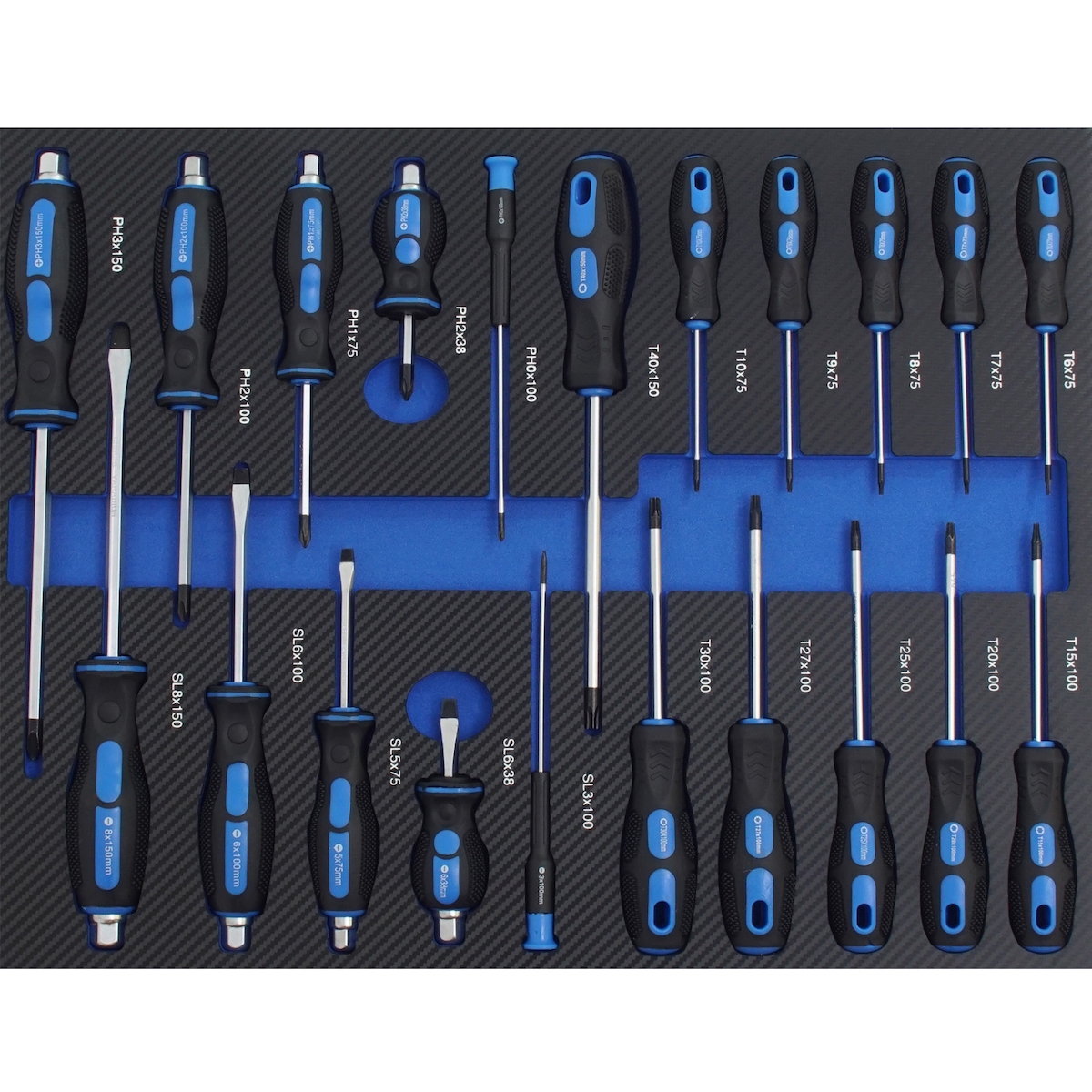 Baumarktplus Profi Werkstattwagen Einlage blau Schraubendreher 21 tlg. Sortiment Schaum 520x400mm