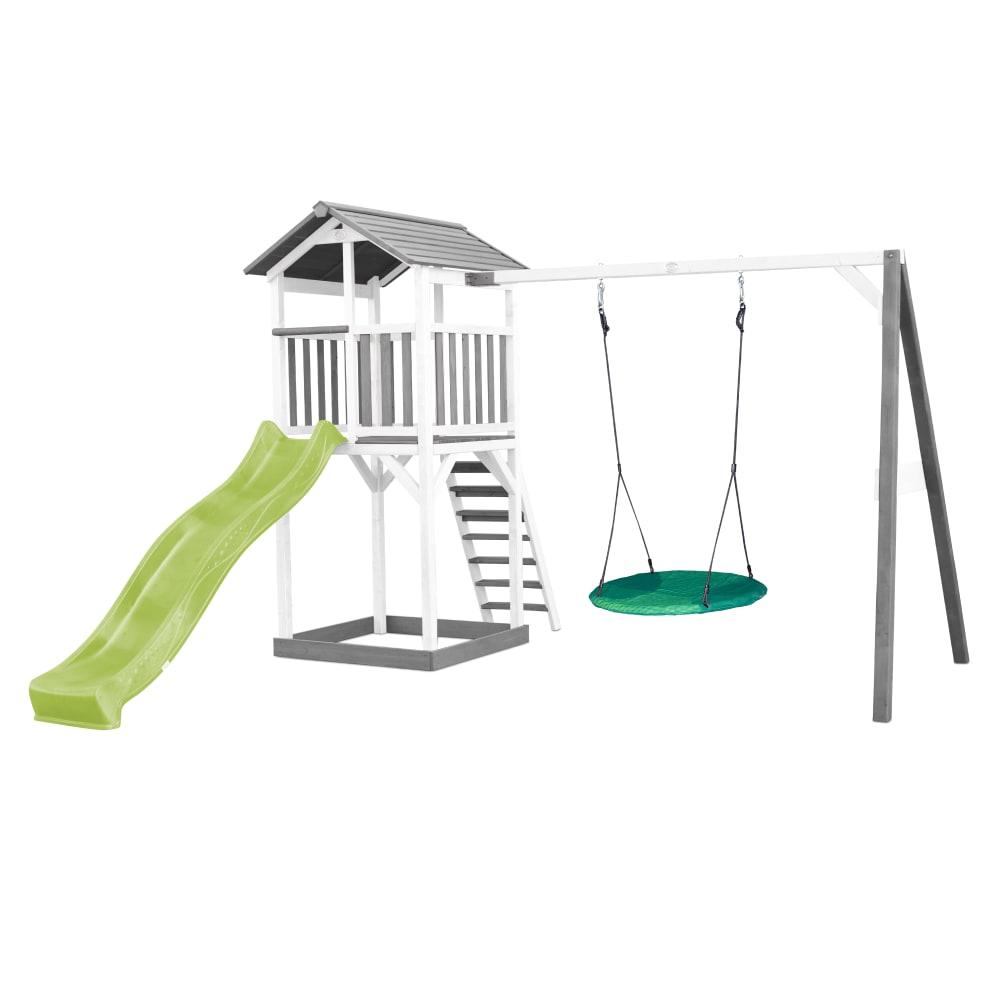 Parco giochi con arrampicata, scivolo verde, bianco/grigio