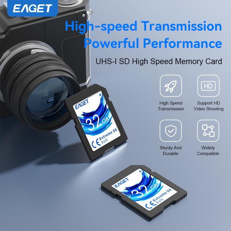 EAGET høyhastighets SD-kort 512G/256GB/128GB/64GB/32GB- 90MB/s C10, U1, Full HD, SD-kort for kamera