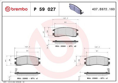 Brembo Bremsbelagsatz, Scheibenbremse [Hersteller-Nr. P59027] für Mega, Vauxhall, Mitsubishi, Chevrolet, Saturn, Cadillac, Buick, Oldsmobile, Opel, Po