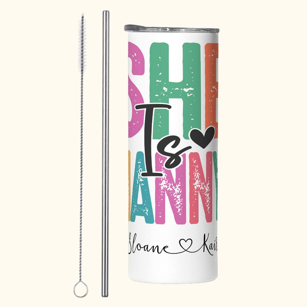 Vaso de 20 oz personalizado con la letra She Is Mom (Ella es mamá), con los nombres de 1 a 16 niños y un versículo bíblico Regalo cristiano del Día de