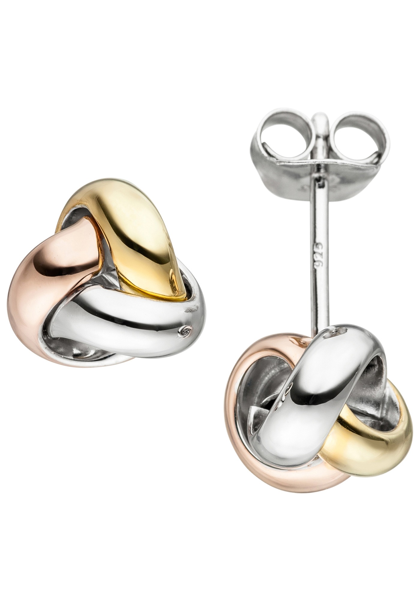 Paar Ohrstecker JOBO, silber (silber 925), Ohrringe, Damen, Silber 925 (Sterlingsilber), Knoten 925 Silber tricolor