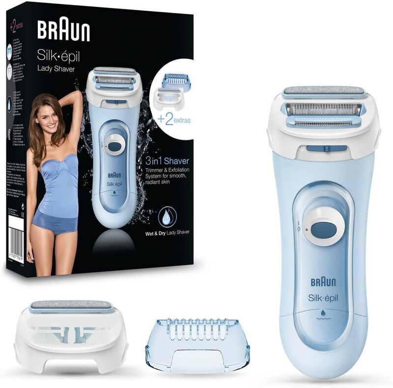 BRAUN Silk-épil 5 Lady Shaver, 3-in-1 Wet & Dry Electric Shaver, Trimmer & Exfoliation System, 100% Waterproof, 5-160, Blue, Top Gift Picks
