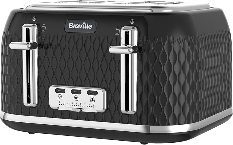Breville Curve 4 Slice Toaster, High-Lift, Wide Slots, Textured, Black & Silver Chrome - VTT786