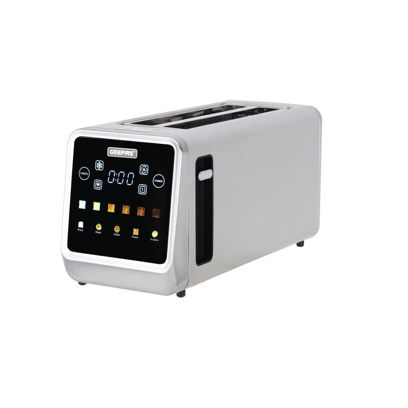Geepas 5-in-1 Digital Touchscreen 4 Slice Long Slot Toaster, Bagels, 5 Bread Types, Stainless Steel Housing, Extra-Wide Slots, 1450W, Silver - GBT36566UK