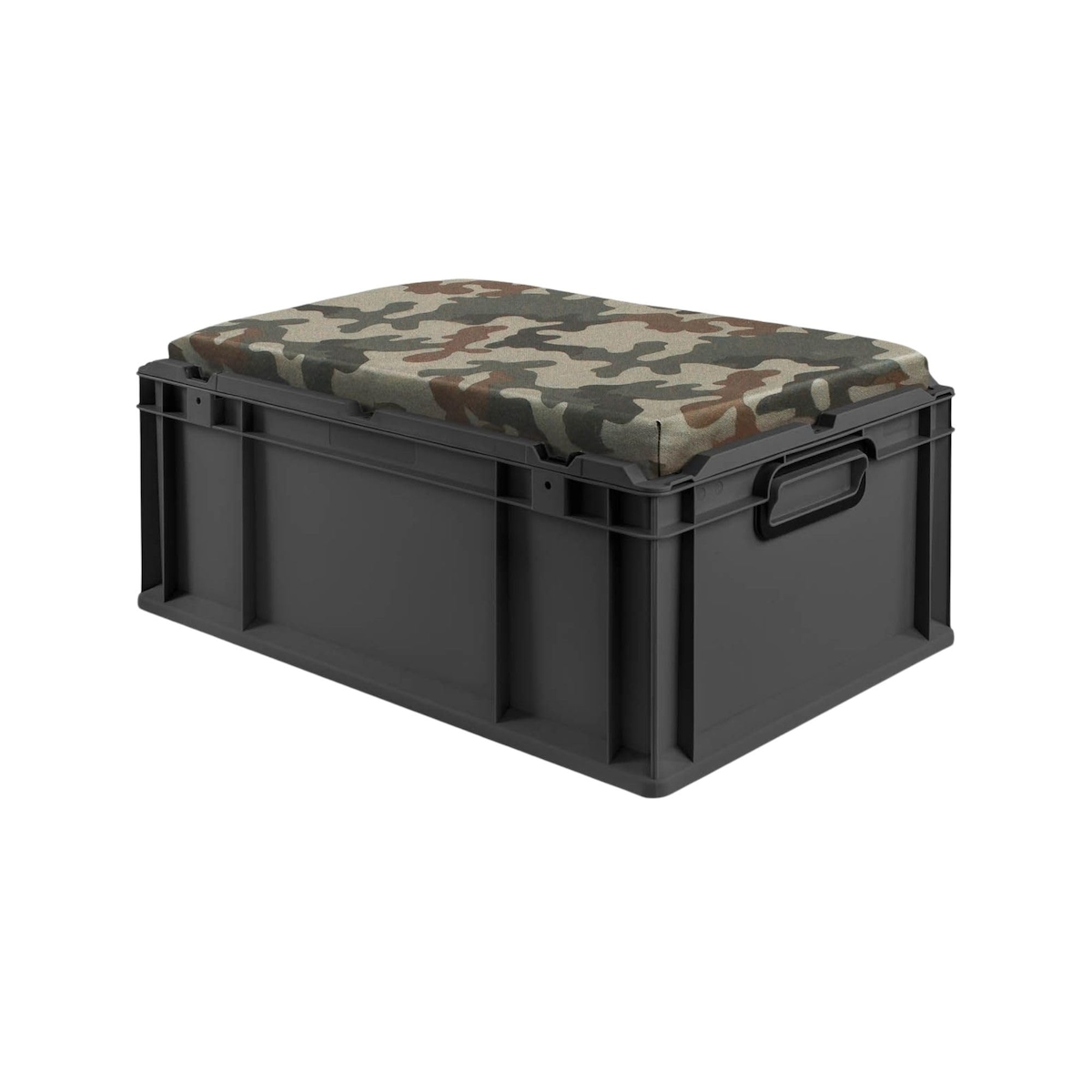 PROREGAL Eurobox NextGen Seat Box Camouflage, HxBxT 26,5x40x60cm, 44 Liter, Griffe geschlossen, Schwarz, Eurobehälter, Sitzbox, Transportbox