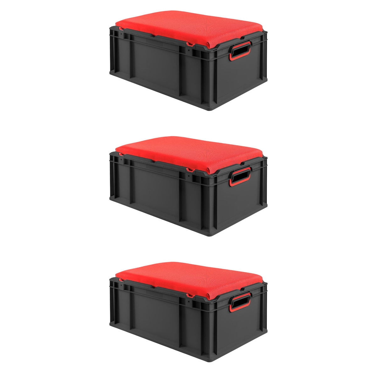 PROREGAL SparSet 3x Eurobox NextGen Seat Box Rot, HxBxT 26,5x40x60cm, 44 Liter, Griffe offen, Schwarz, Eurobehälter, Sitzbox, Transportbox