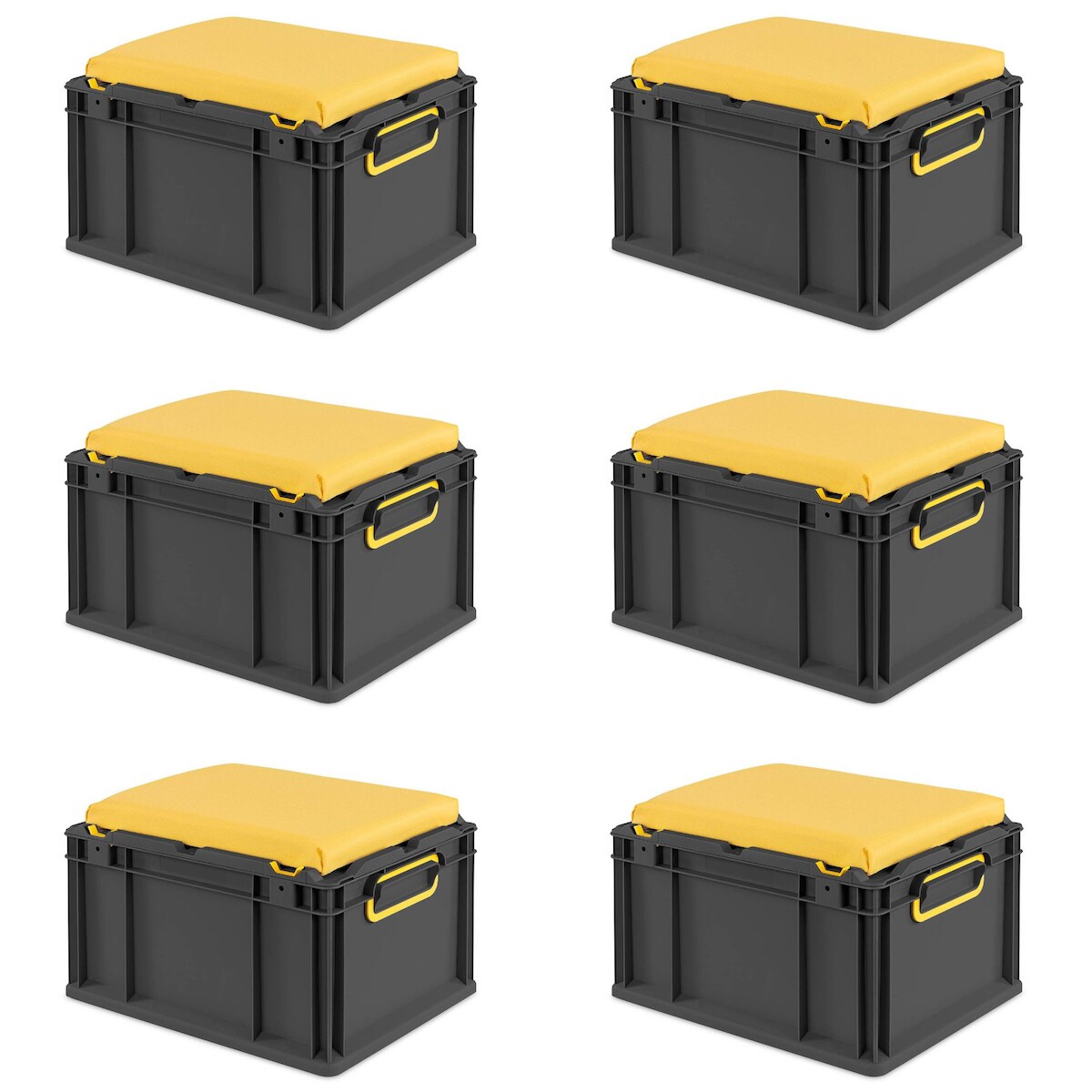PROREGAL SparSet 6x Eurobox NextGen Seat Box Gelb, HxBxT 26,5x30x40cm, 20 Liter, Griffe geschlossen, Schwarz, Eurobehälter, Sitzbox, Transportbox
