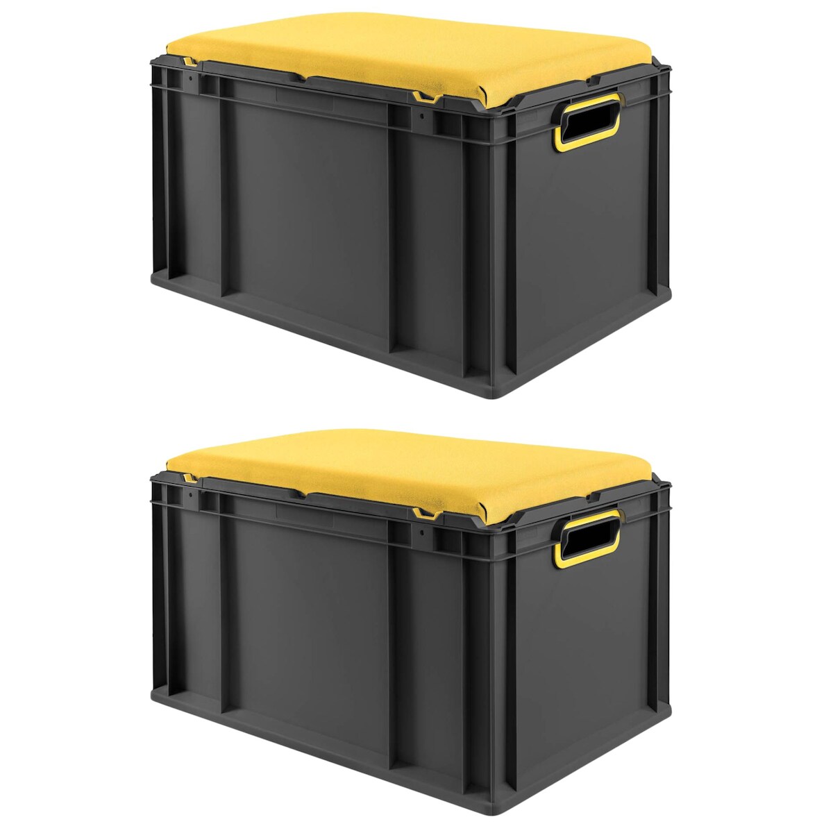 PROREGAL SparSet 2x Eurobox NextGen Seat Box Gelb, HxBxT 36,5x40x60cm, 65 Liter, Griffe offen, Schwarz, Eurobehälter, Sitzbox, Transportbox
