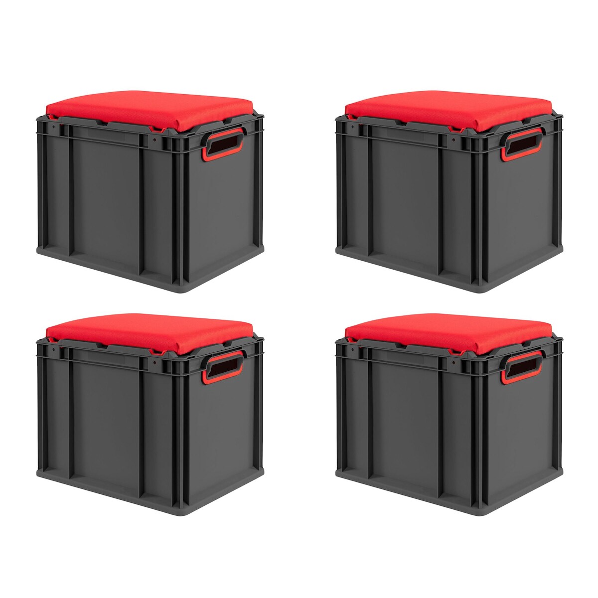 PROREGAL SparSet 4x Eurobox NextGen Seat Box Rot, HxBxT 36,5x30x40cm, 30 Liter, Griffe offen, Schwarz, Eurobehälter, Sitzbox, Transportbox