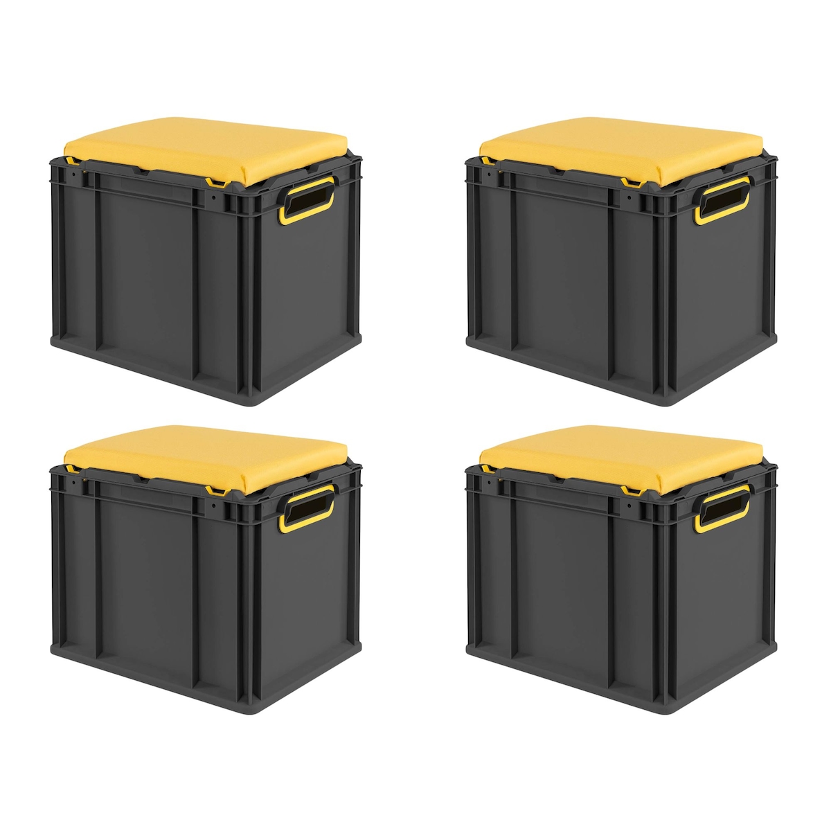 PROREGAL SparSet 4x Eurobox NextGen Seat Box Gelb, HxBxT 36,5x30x40cm, 30 Liter, Griffe offen, Schwarz, Eurobehälter, Sitzbox, Transportbox