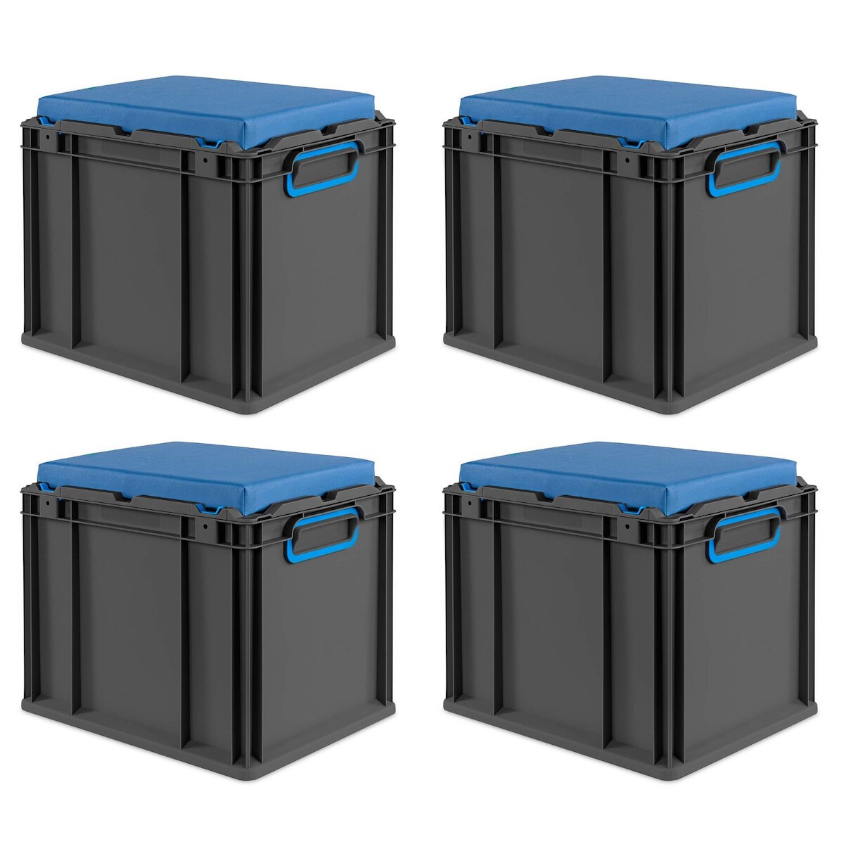 PROREGAL SparSet 4x Eurobox NextGen Seat Box Blau, HxBxT 36,5x30x40cm, 30 Liter, Griffe geschlossen, Schwarz, Eurobehälter, Sitzbox, Transportbox