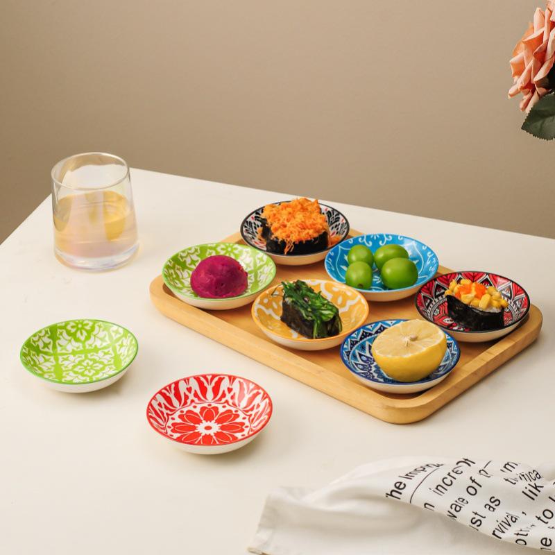 Bohemian Ceramic Condiment Dish - Small Dipping Sauce Dish for Sushi, Hot Pot, Soy Sauce, or Vinegar.