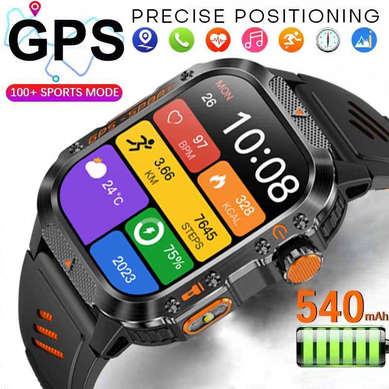 2025 Nieuwe Militaire Smartwatch Heren IP68 5ATM Outdoor Sport Fitness Tracker Gezondheidsmonitor 1.81Inch BT Call Smartwatch voor Xiaomi zwart