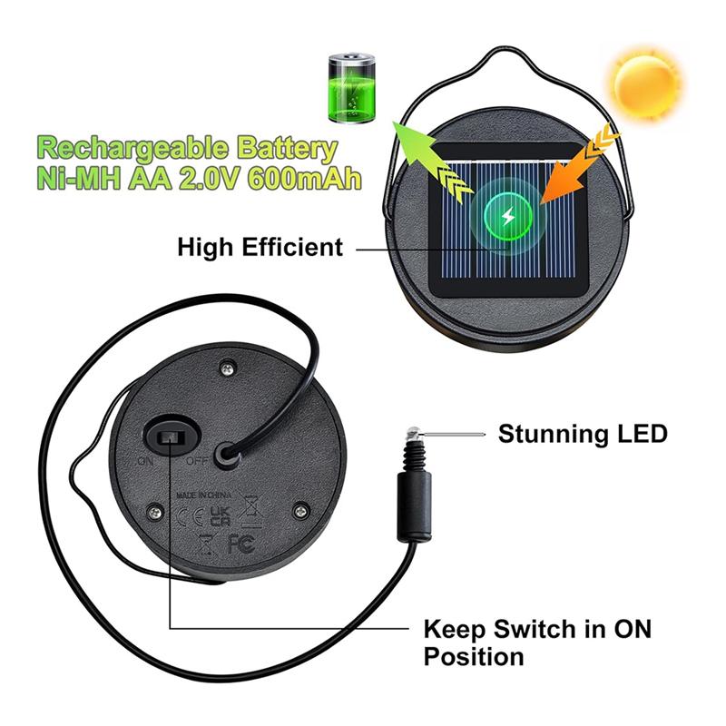 2 Stück Solar Laterne Lichterkette Ersatz Solarpanels mit 30 LED Lichterkette LED Solarpanel Laternen Deckel Runde Solarleuchte
