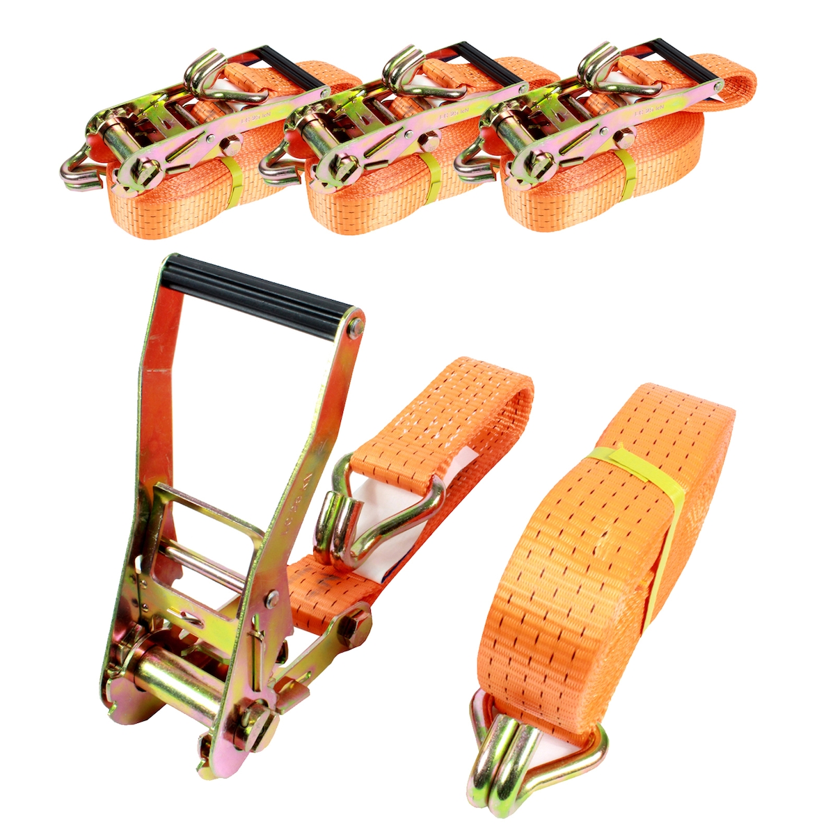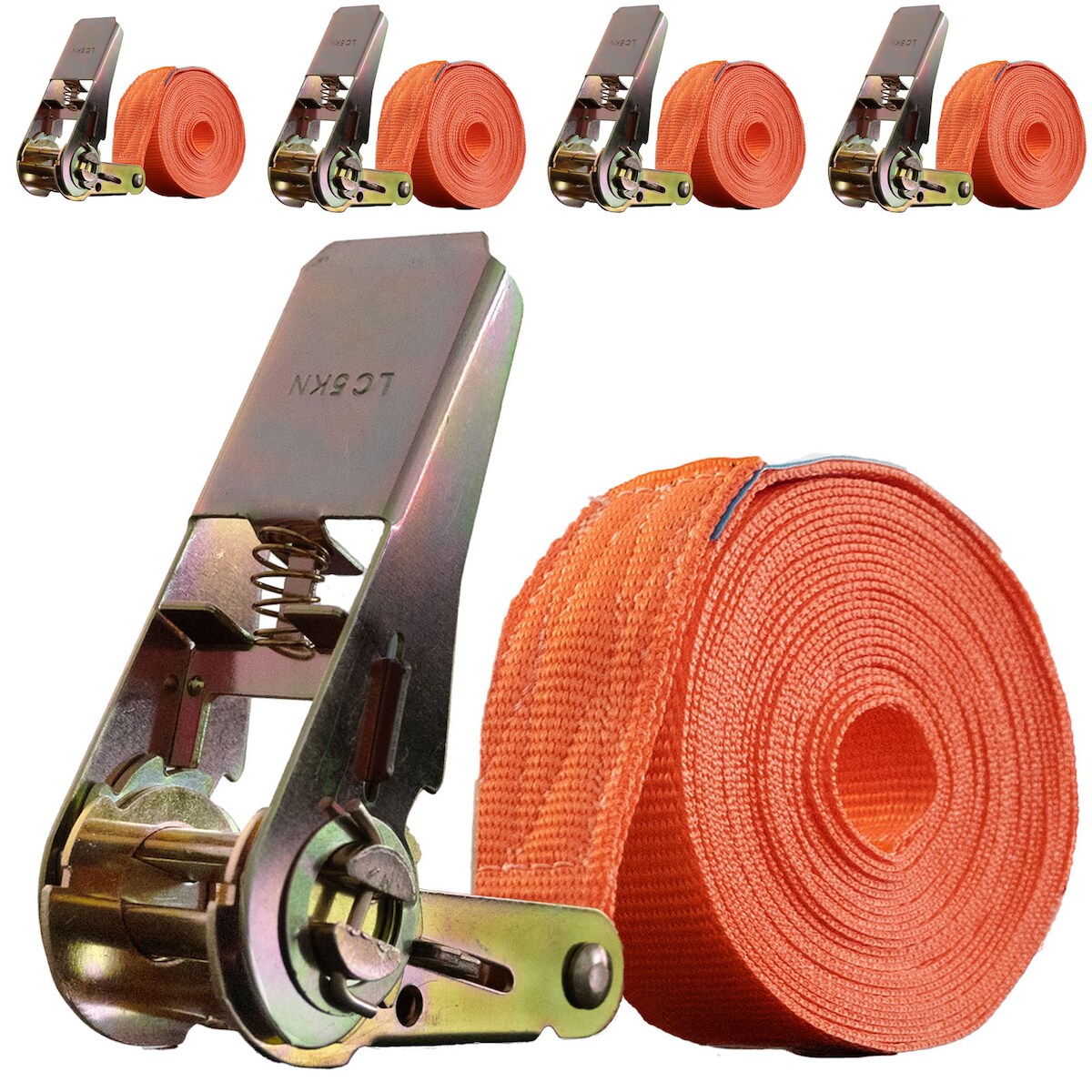 4 Stück 3000kg 6m Zurrgurte mit Ratsche und Haken, Spanngurte, 38mm, 3000 DaN, orange