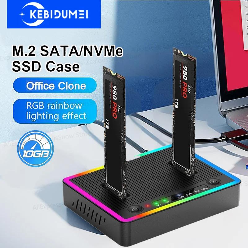 M.2 NVMe/SATA Dubbelplats Hårddisk Dockningsstation Offline Kloning Hårddisk M.2 SSD Duplikator USB3.2 GEN2 SSD Adapter Hölje