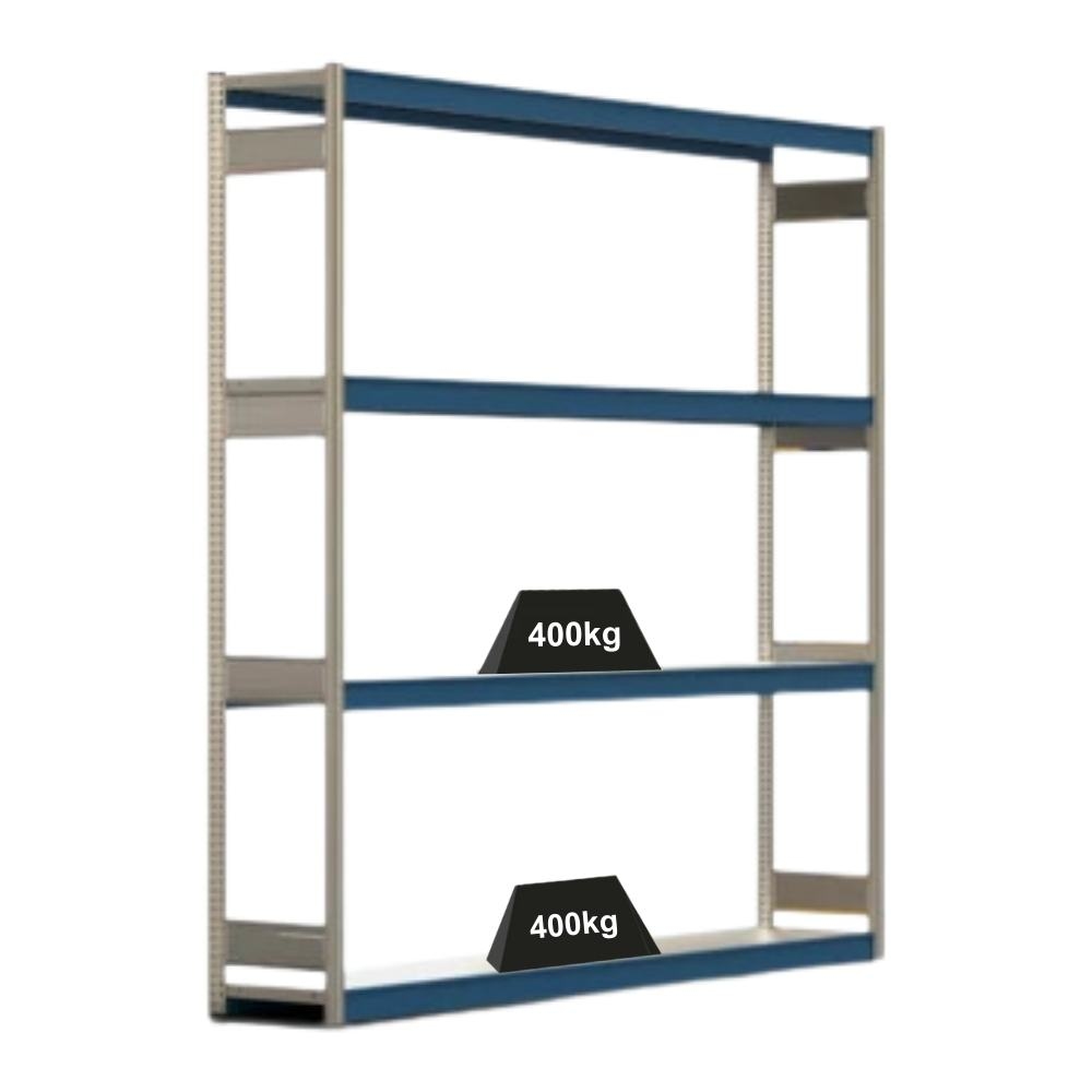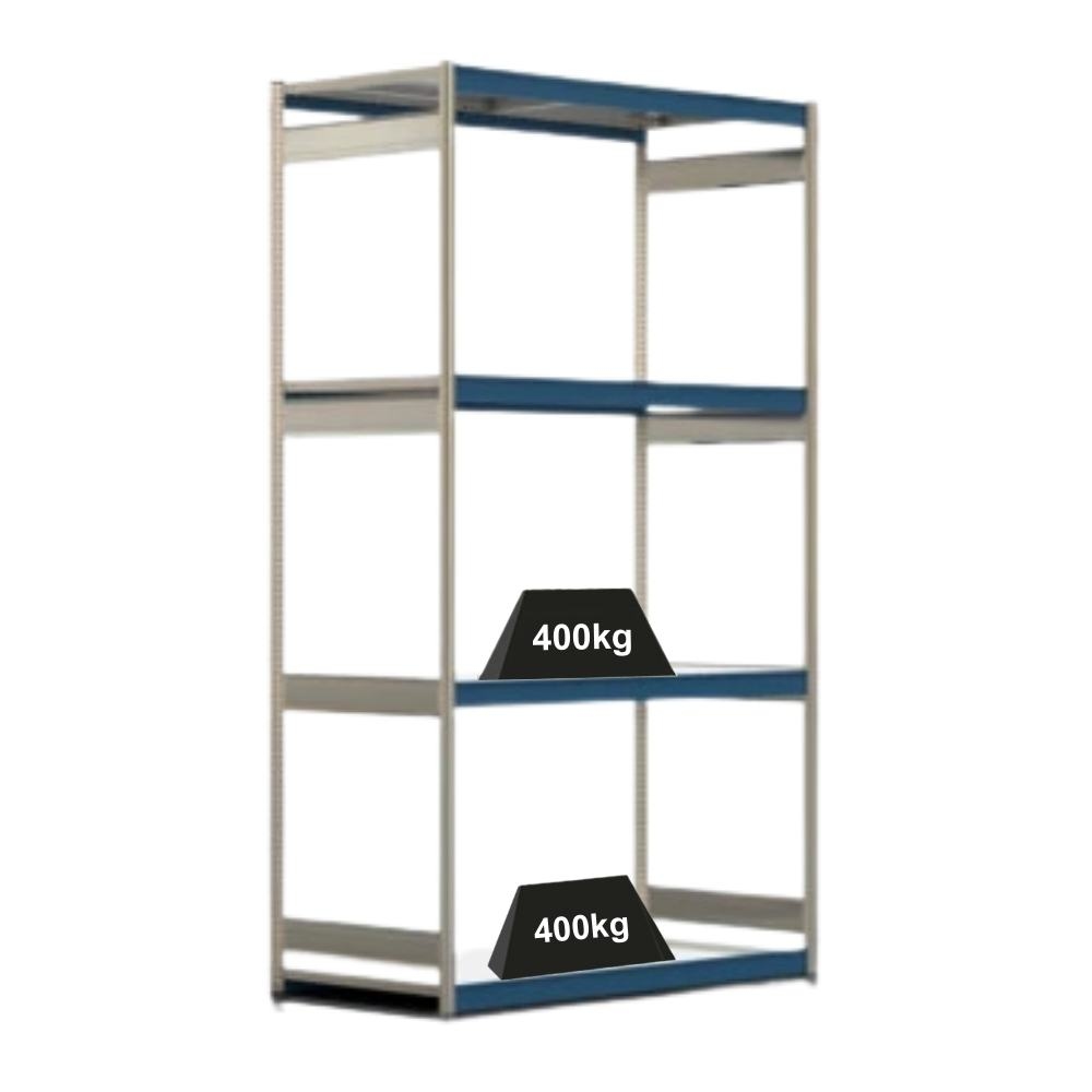 PROREGAL Weitspannregal ELCH Stecksystem T-Profil | Grundregal | HxBxT 200x257x60cm | 4 Ebenen | Stahlplatten-Fachboden | Fachlast 400kg | Enzianblau