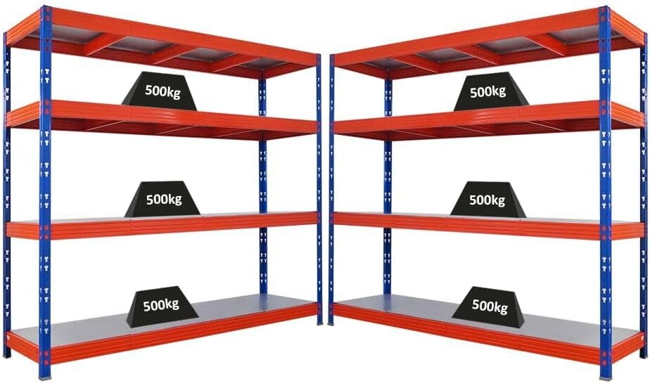 PROREGAL Mega Deal | 2X Profi Schwerlastregal Rhino | HxBxT 180x200x60cm | 4 Stahlplatten-Ebenen | Fachlast 500kg | Blau-Orange | Garage, Lager
