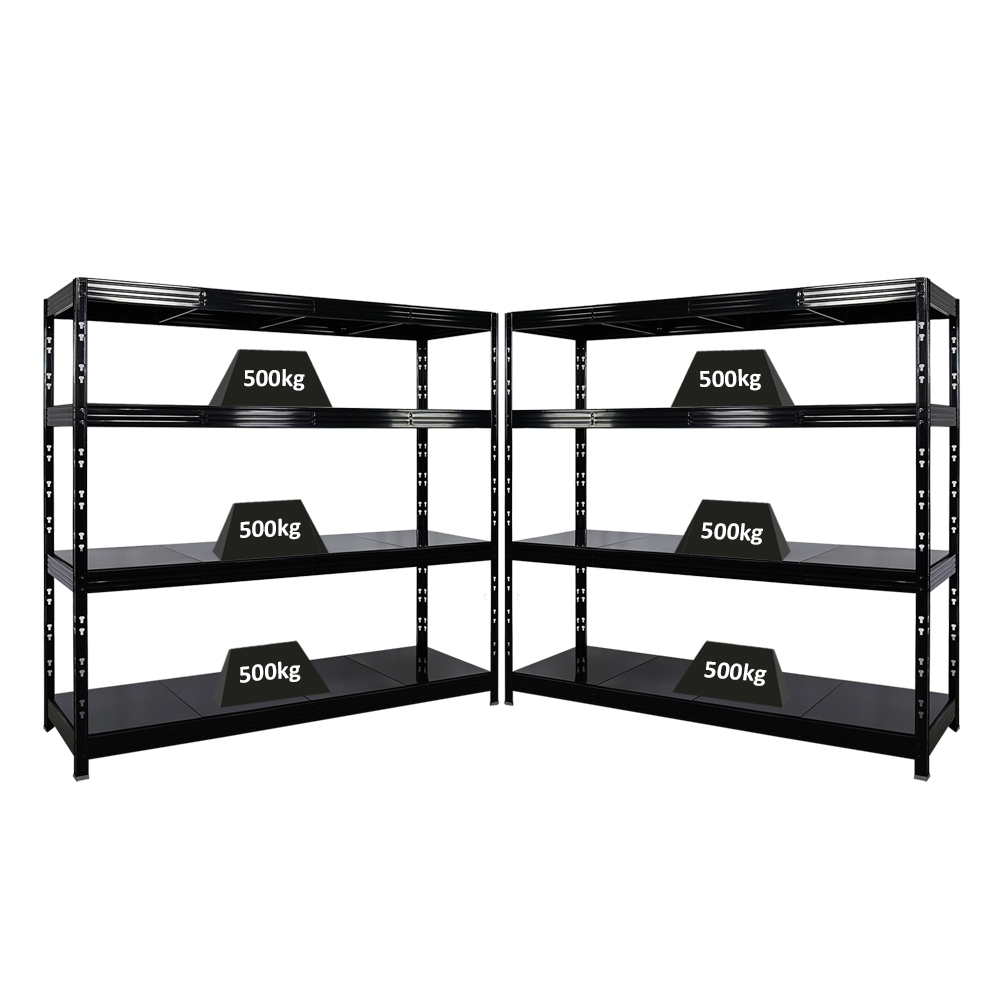 PROREGAL Mega Deal | 2x Profi Schwerlastregal Rhino | HxBxT 180x200x60cm | 4 Stahlplatten-Ebenen | Fachlast 500kg | Schwarz