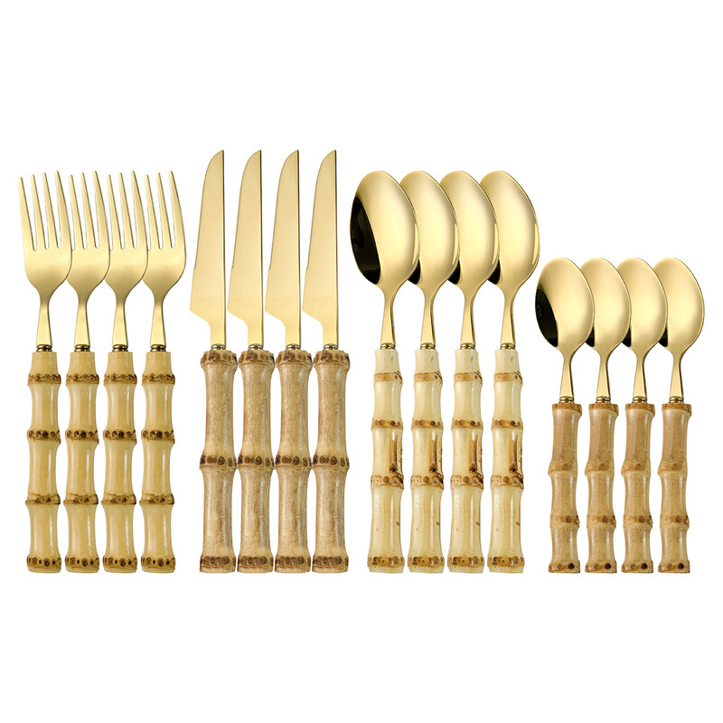 Fangyuan 16 Pieces Cutlery Set Golden Stainless Steel with Knife, Fork, Spoon, High-Quality Stainless Steel Cutlery, Dishwasher Safe Kitchen Set K34