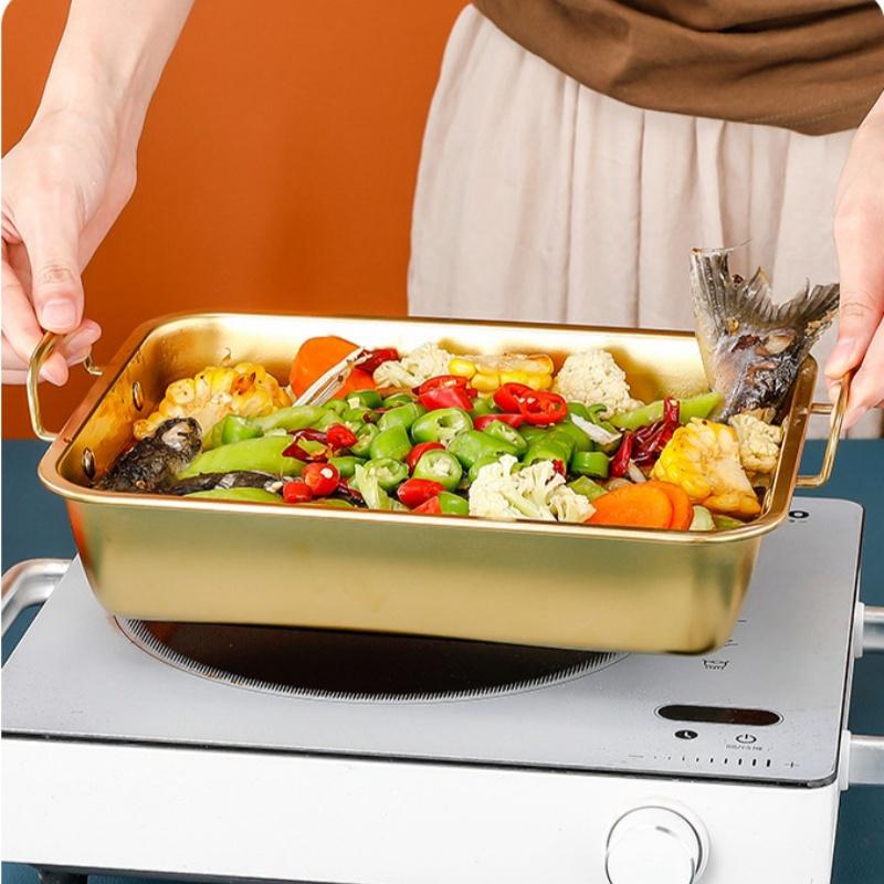 Deep Baking Sheet Stainless Steel Rectangular Baking Tray Fish Roasting Pan Food Serving Tray Baking Pan Kitchen Accessories