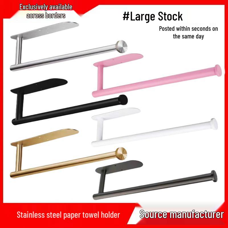Stainless Steel Drill-Free Adhesive Kitchen Paper Towel Holder - Wall-Mounted Black Metal American Style