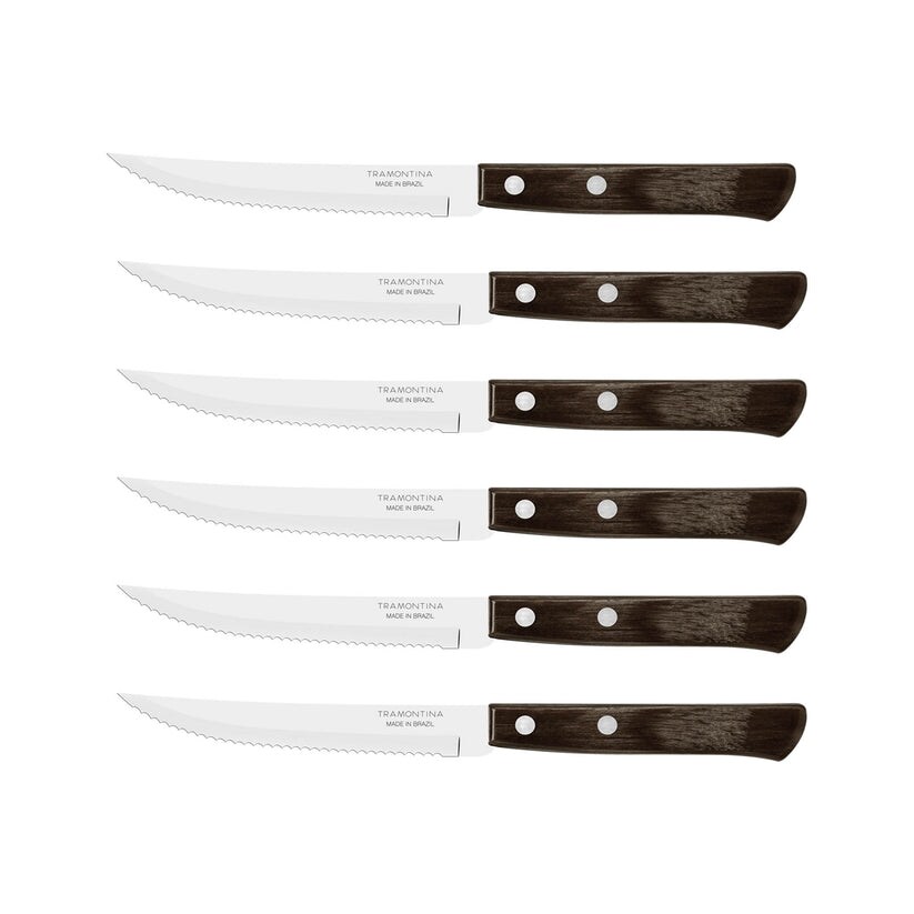 Tramontina STEAK-/PIZZA Messer, 6 Stück, Edelstahl, Holzgriff FSC, spülmaschinenfest